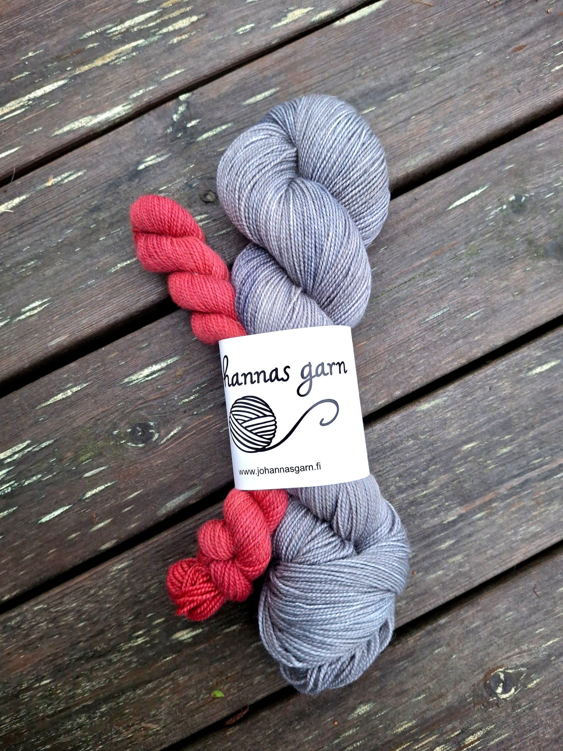 100g mellangrå och 20g röd. 425m och 85m. Merino sock 75% superwash merinoull och 25% nylon.